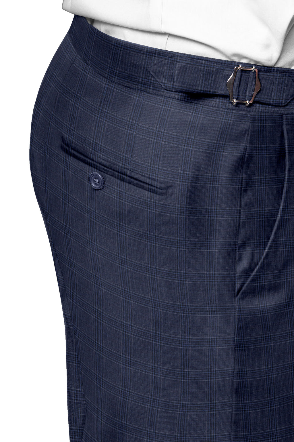 Craft tailored trousers with this blue worsted checks wool pants fabric made from 100% Merino Wool. Balanced for everyday wear with Super 120s. Maker-minded s...