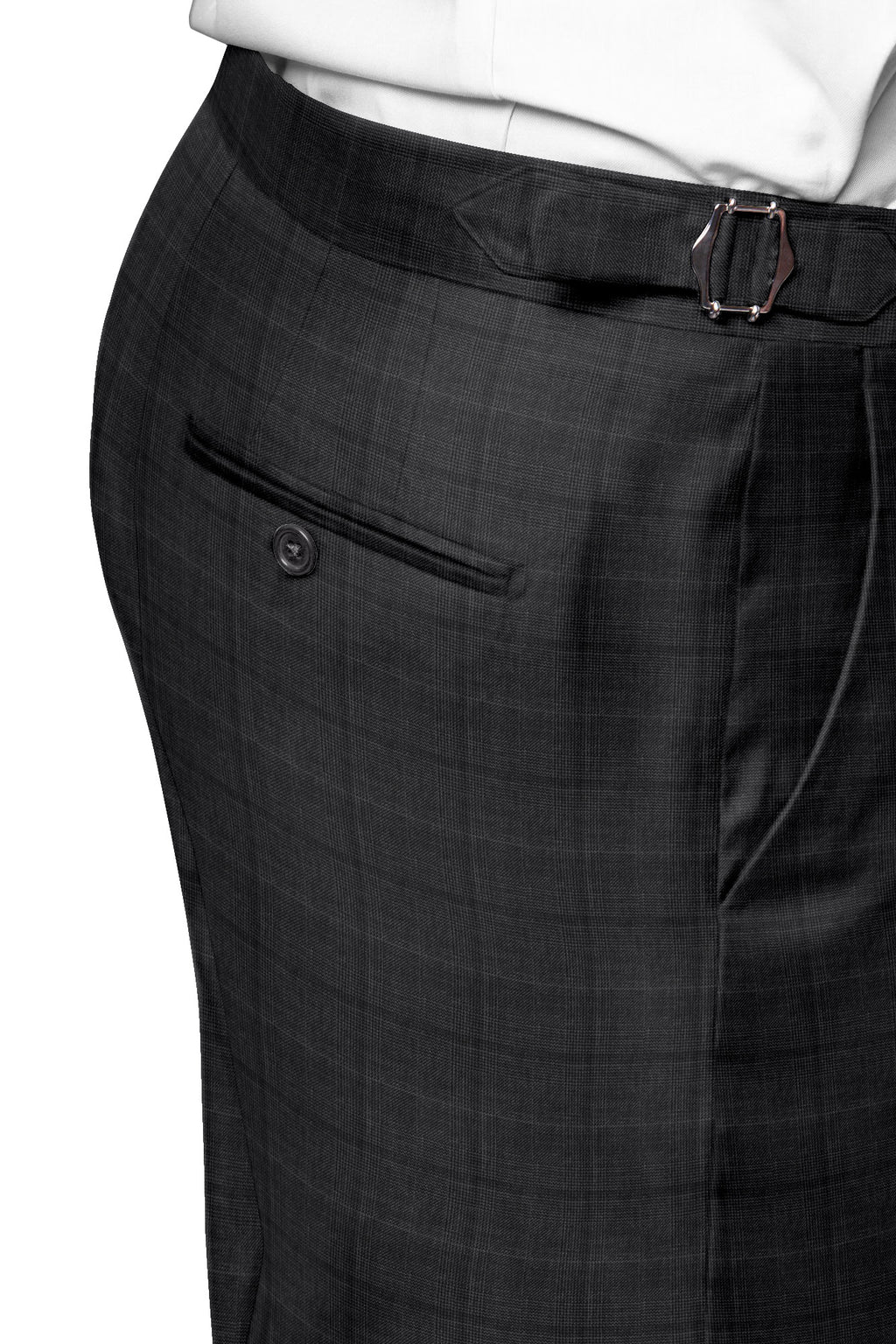 Set your tailoring apart with this charcoal and black worsted checks suiting in 100% Merino Wool. Engineered for versatile wear with Super 120s. Specs to love...