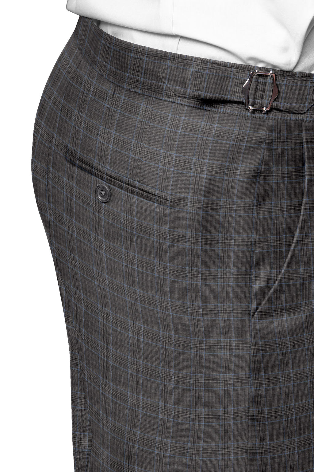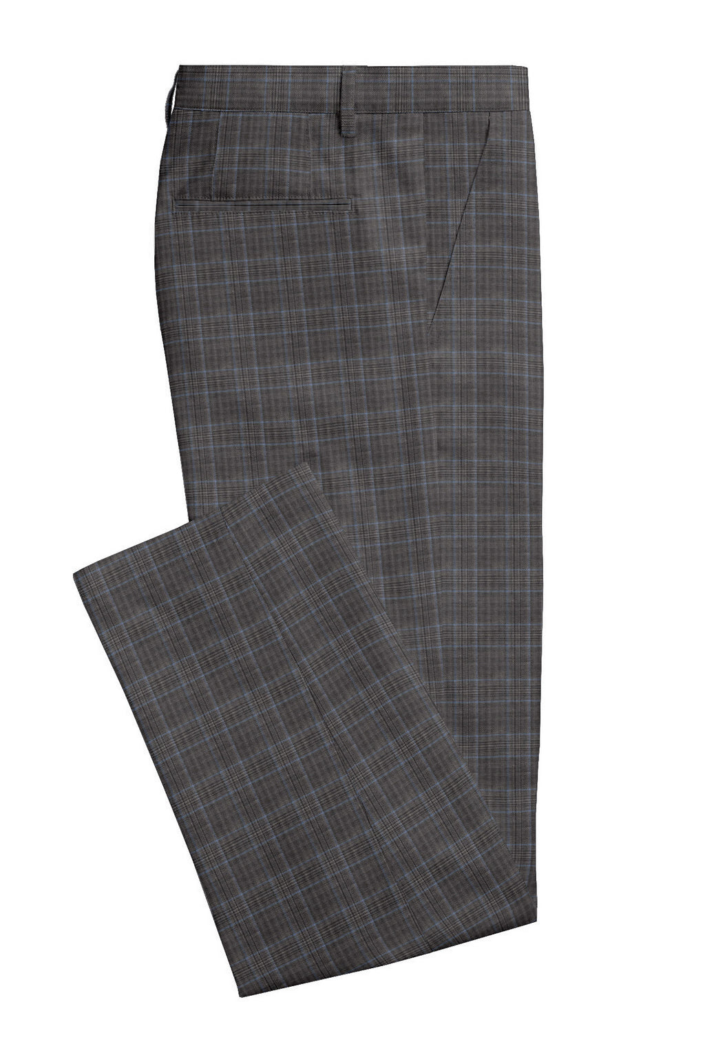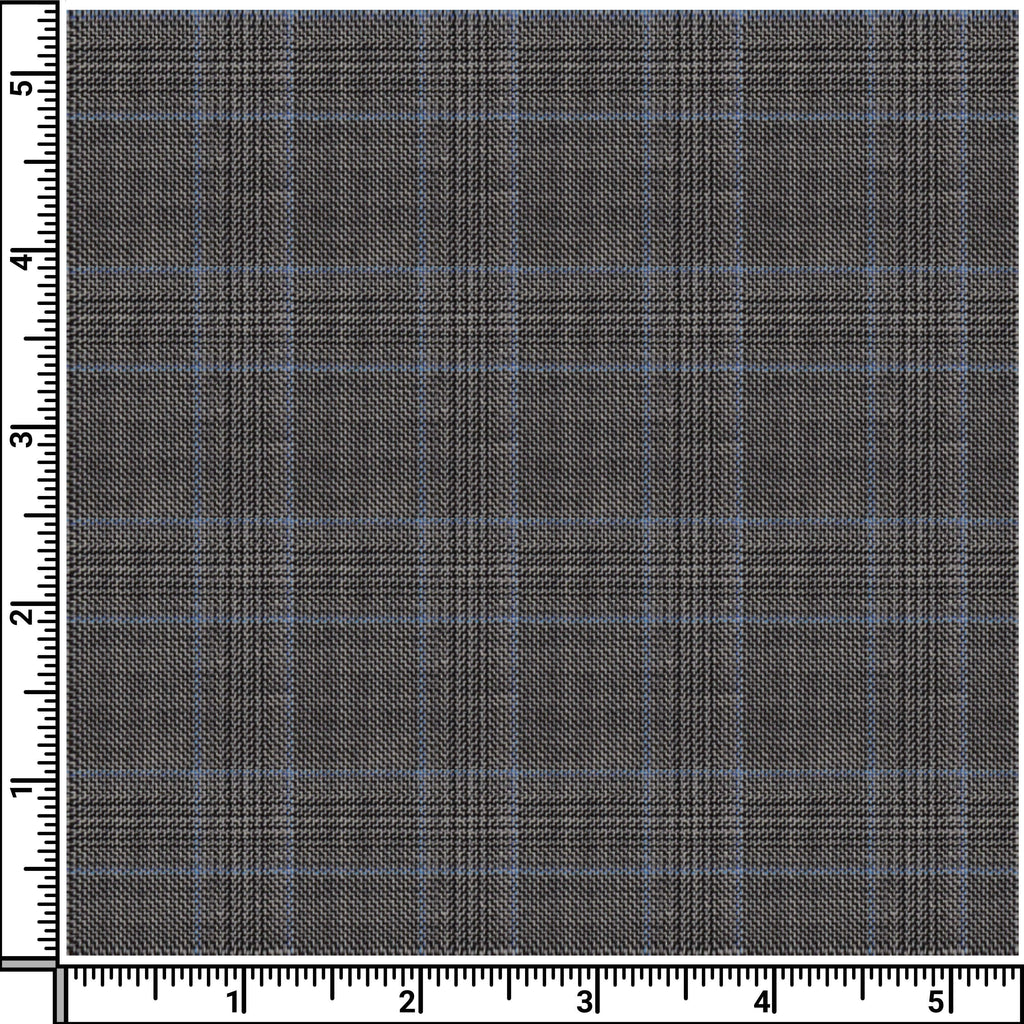 Keep it tailored and comfortable with this grey and sky-blue worsted checks pants cloth in 100% Merino Wool. Balanced for everyday wear with Super 120s. Detai...