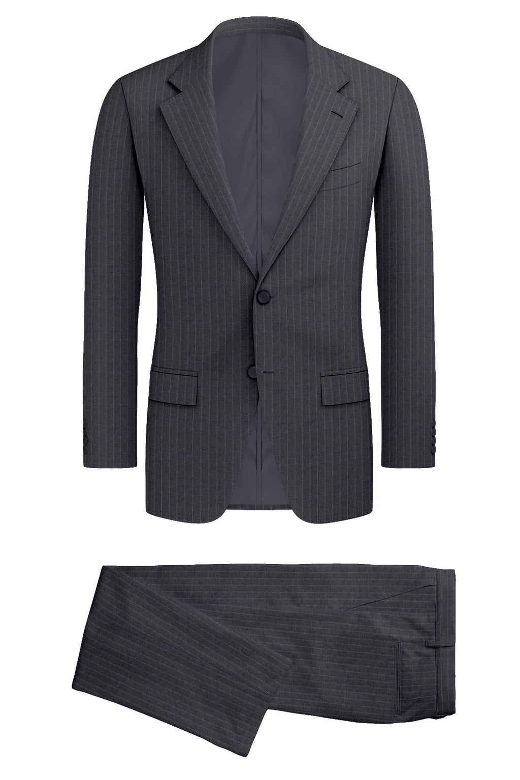 Cut a confident silhouette with this grey and white worsted stripes suiting, woven from luxurious 100% Merino Wool. Engineered for versatile wear with Super 1...