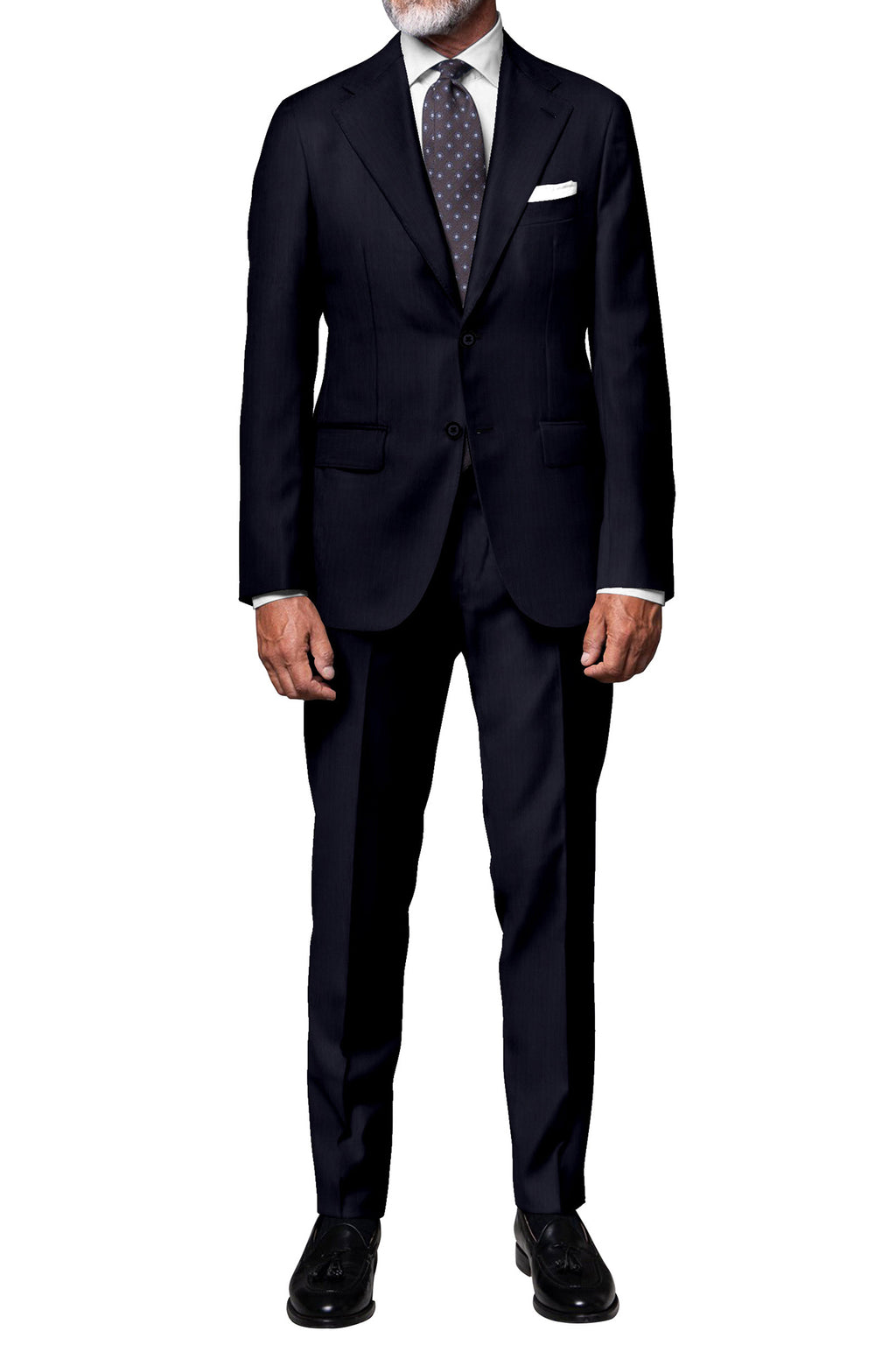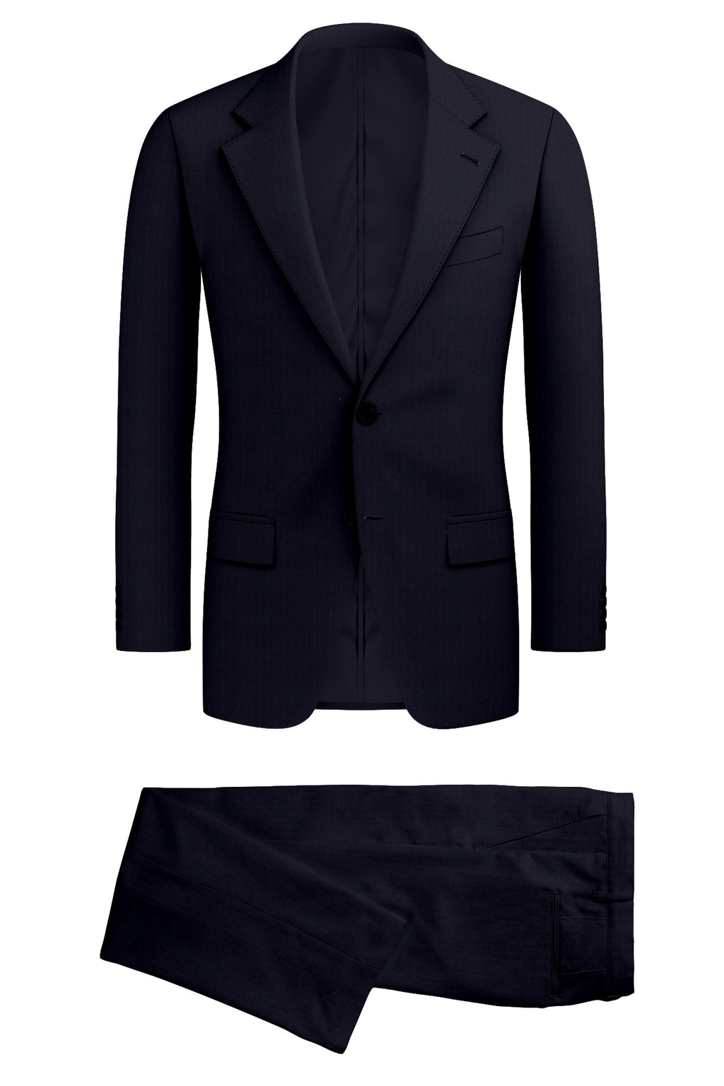 Bring sharp structure to your wardrobe with this midnight-blue worsted herring bone suiting cloth in fine 100% Merino Wool. Dialed for comfort and durability ...