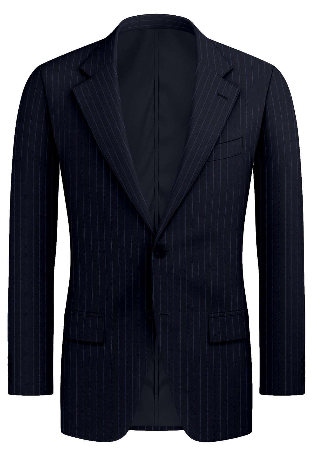 Design blazers that hold their shape with this midnight-blue worsted stripes cloth in 100% Merino Wool. Engineered for versatile wear with Super 120s. Tailor-...