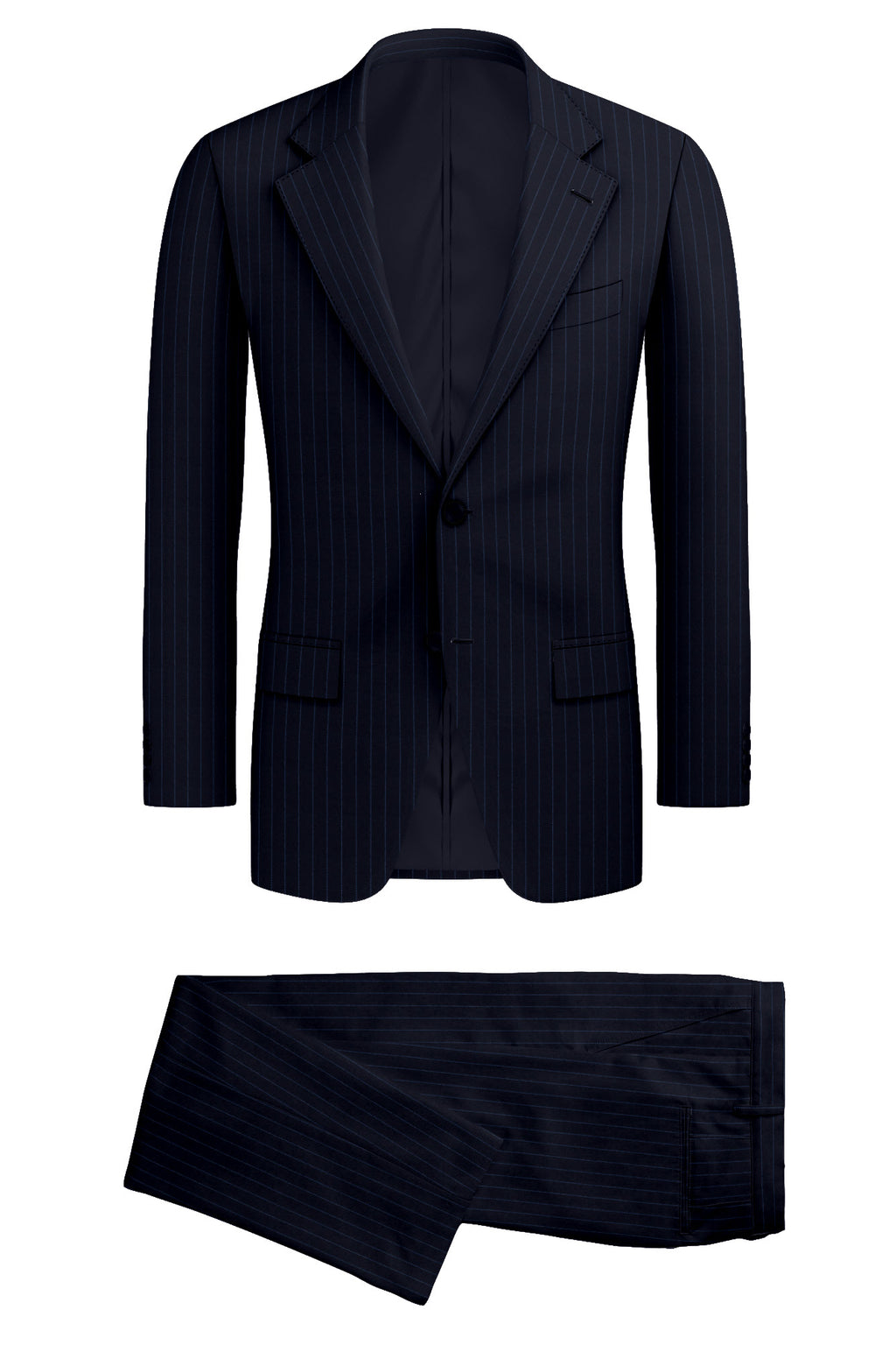 Upgrade your tailoring game with this midnight-blue worsted stripes wool suiting fabric crafted from 100% Merino Wool. Dialed for comfort and durability thank...