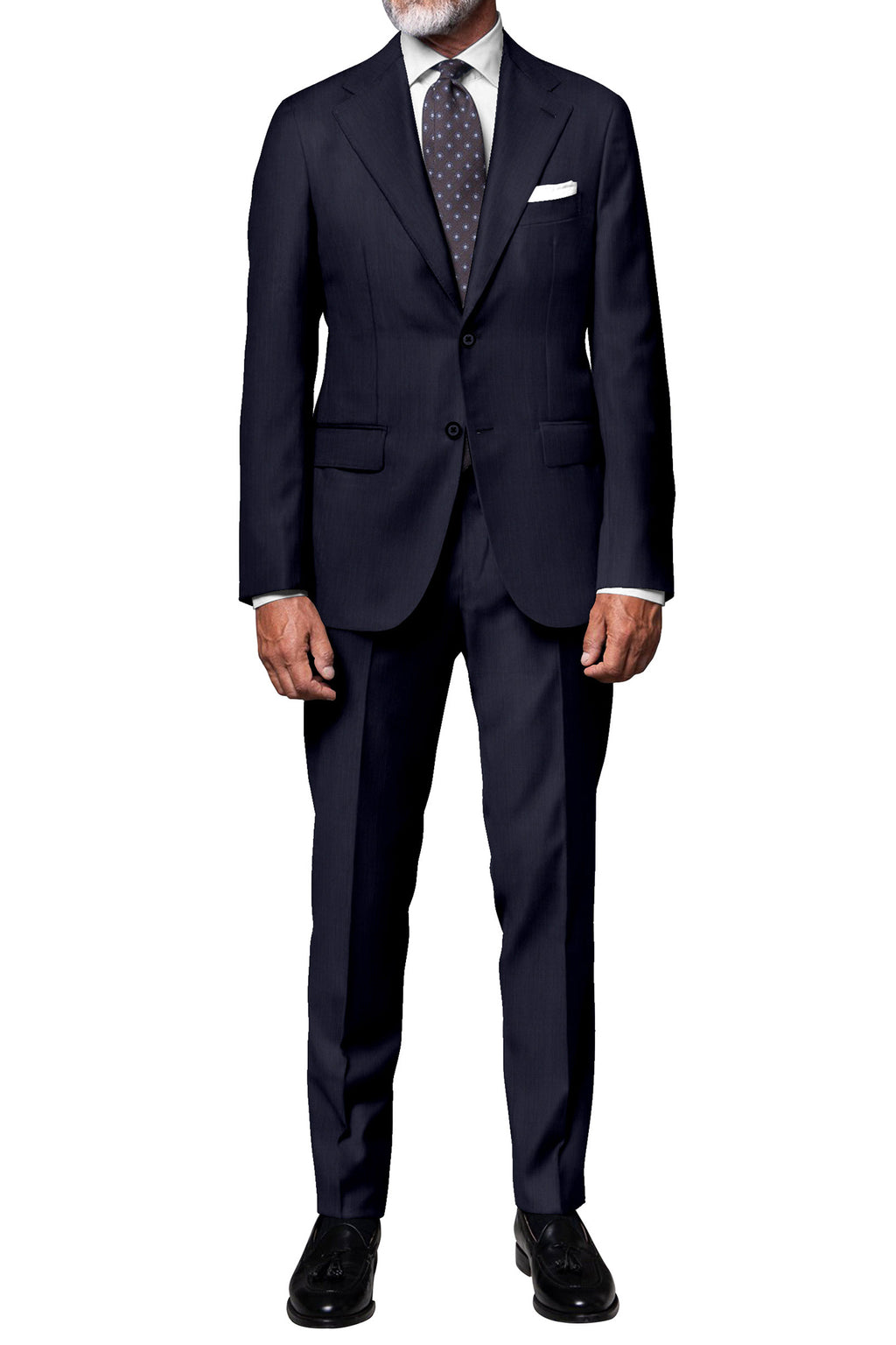 Cut versatile pants with this navy-blue worsted herring bone cloth made of 100% Merino Wool. Engineered for versatile wear with Super 120s. Maker-minded specs...