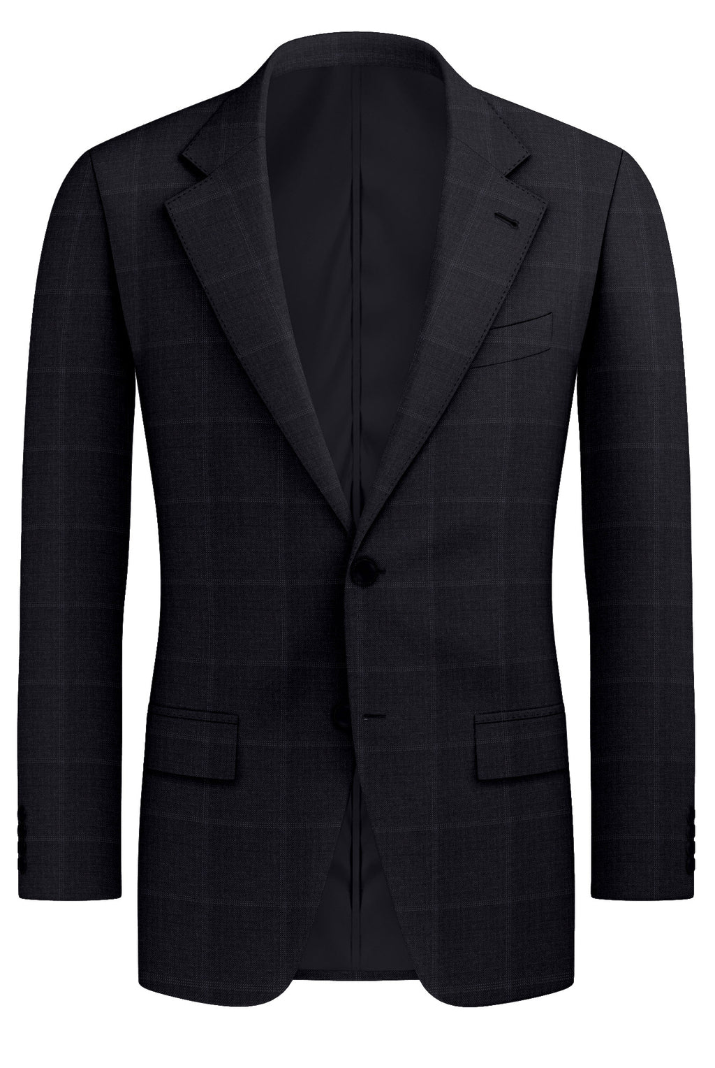 Create a polished blazer with this charcoal and white worsted checks cloth spun from 100% Merino Wool. It hits the sweet spot of comfort and quality with Supe...