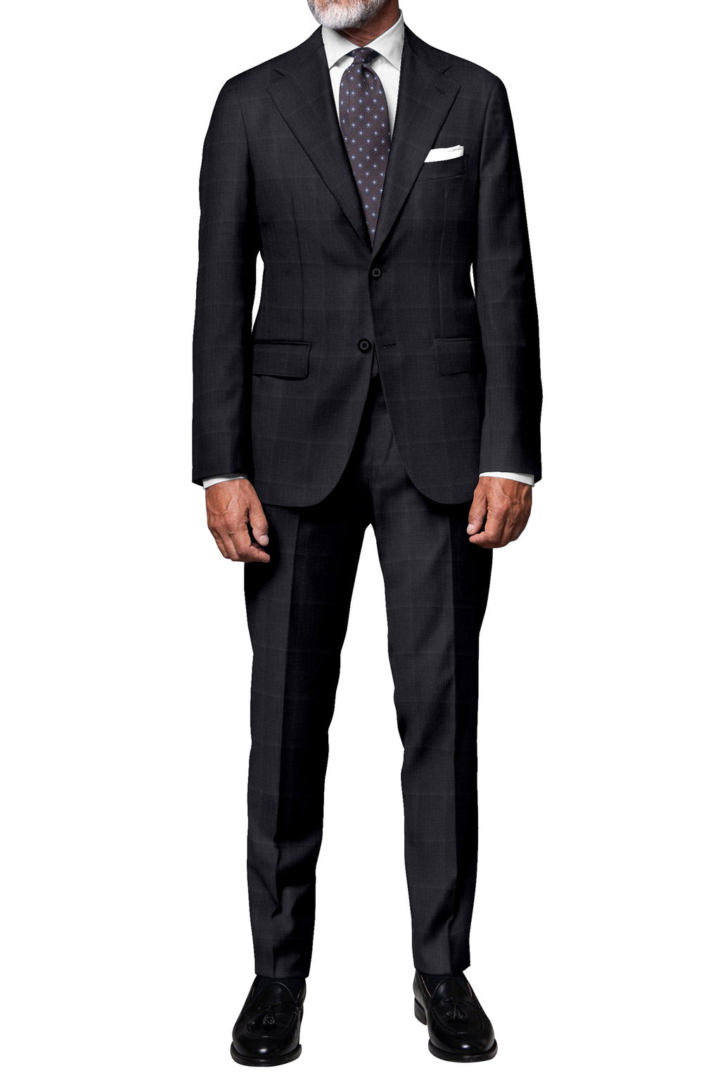 Create a polished blazer with this charcoal and white worsted checks cloth spun from 100% Merino Wool. It hits the sweet spot of comfort and quality with Super 130s. Details to rely on include Article # 2458F-115-01, all season, from Guabello 1815. Keep it looking fresh with professional dry cleaning and light spot care.