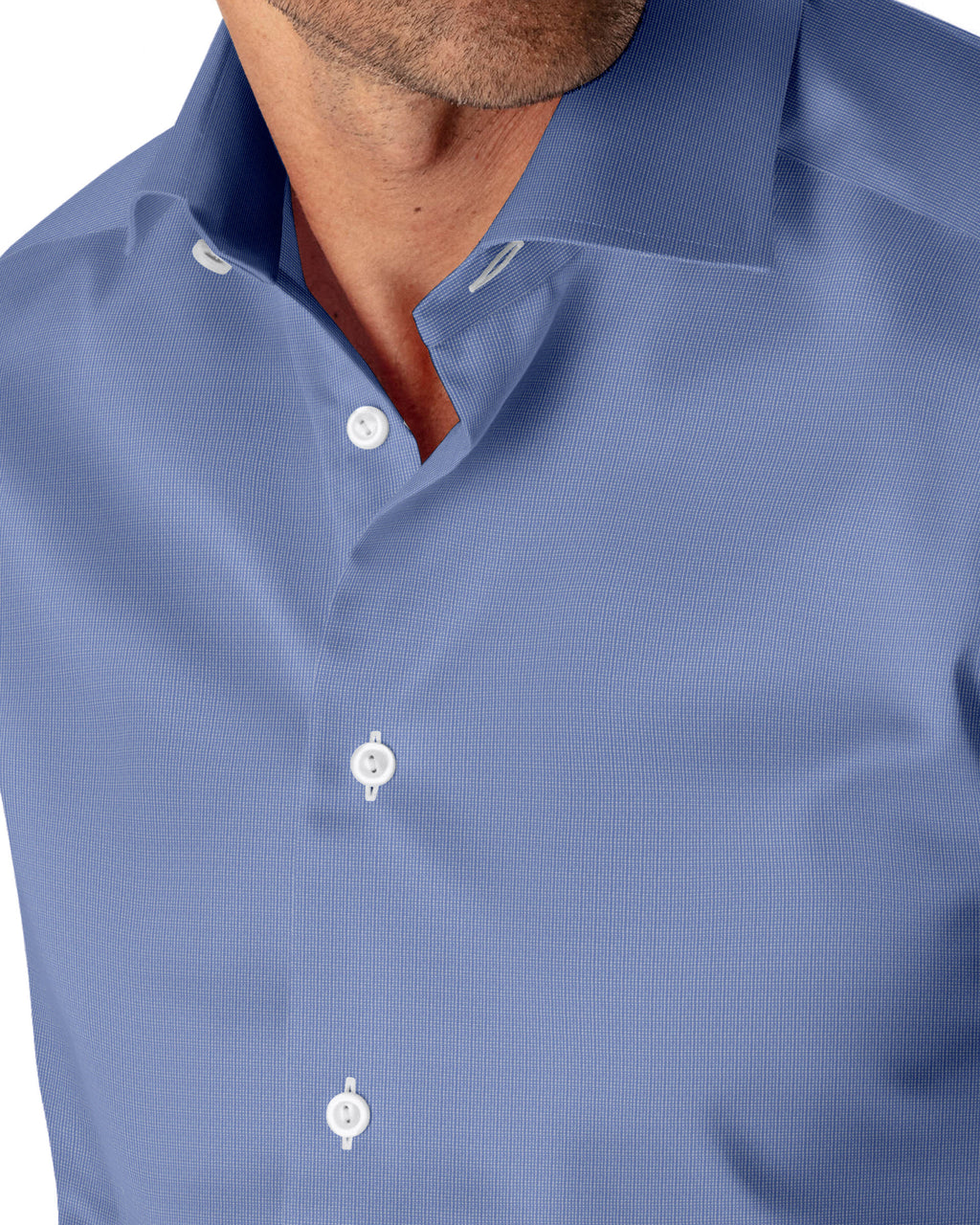 Give your wardrobe a fresh reset with this blue poplin micropattern shirting in premium 100% Giza Cotton. Made to move and last with 70s Compact. That easy to...